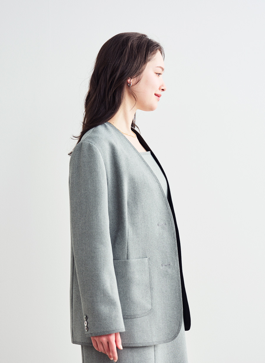5. Vネックノーカラージャケット