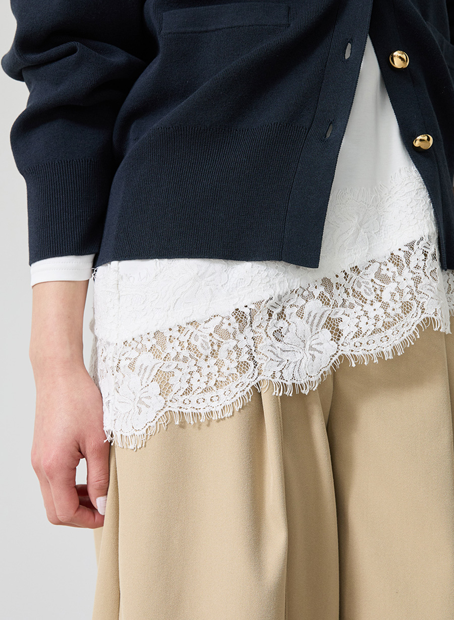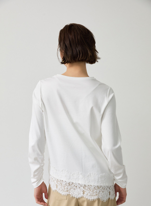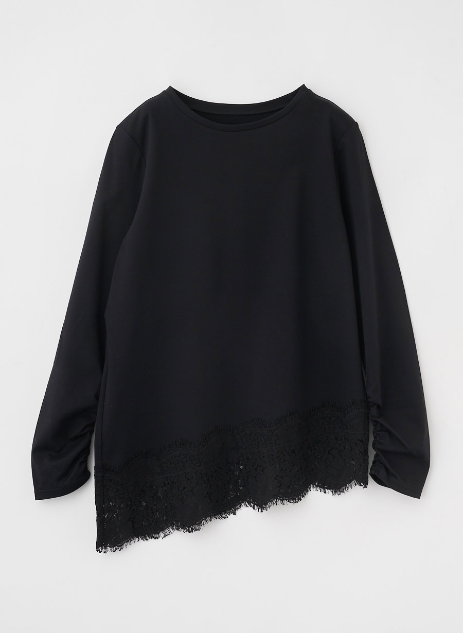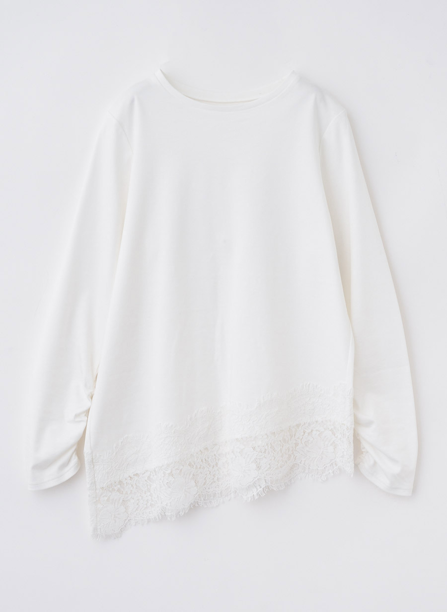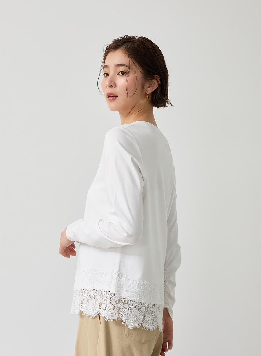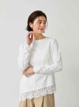 ・アシンメトリーに配置した裾レースが、シンプルなプルオーバーに華やぎを添える一枚。