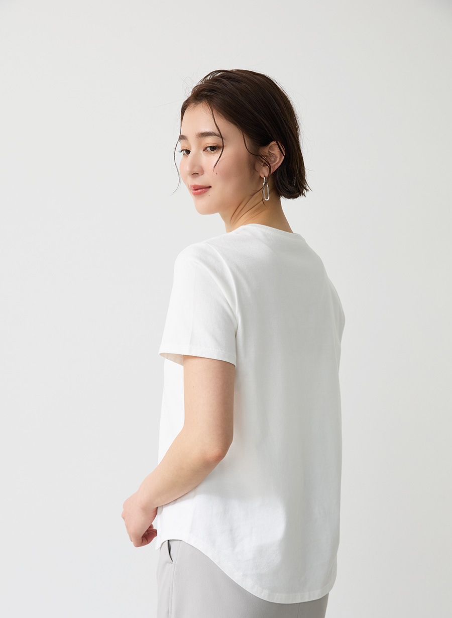 ≪コットン天竺 ワンポイントプリント≫ ベースには、双糸使いで度詰めにして編み上げた、適度な肉感と膨らみのあるナチュラルな素材感が特徴の素材を使用。
