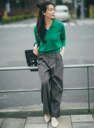 【着用感】スキッパーの空き具合がちょうど良く、首元をスッキリ魅せてくれます!