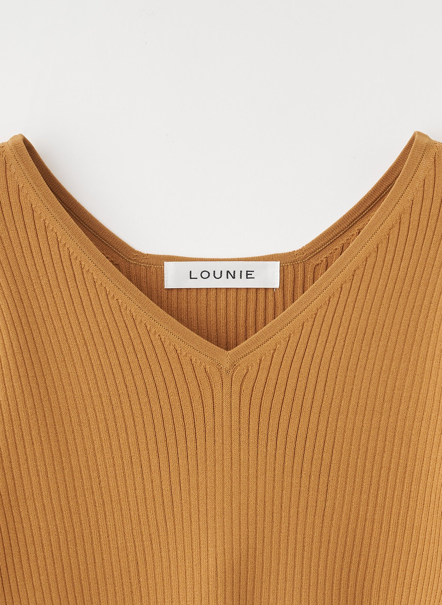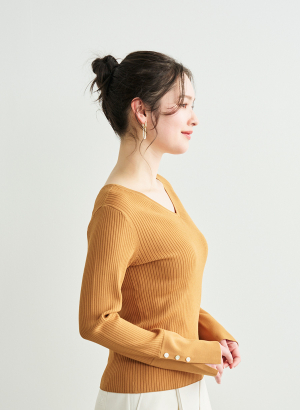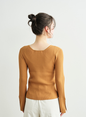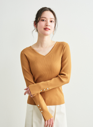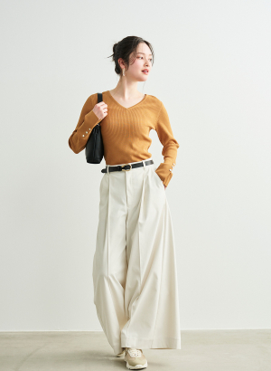 ・程良くフィットしリブの縦ラインによって細見えするのが嬉しいニットです。