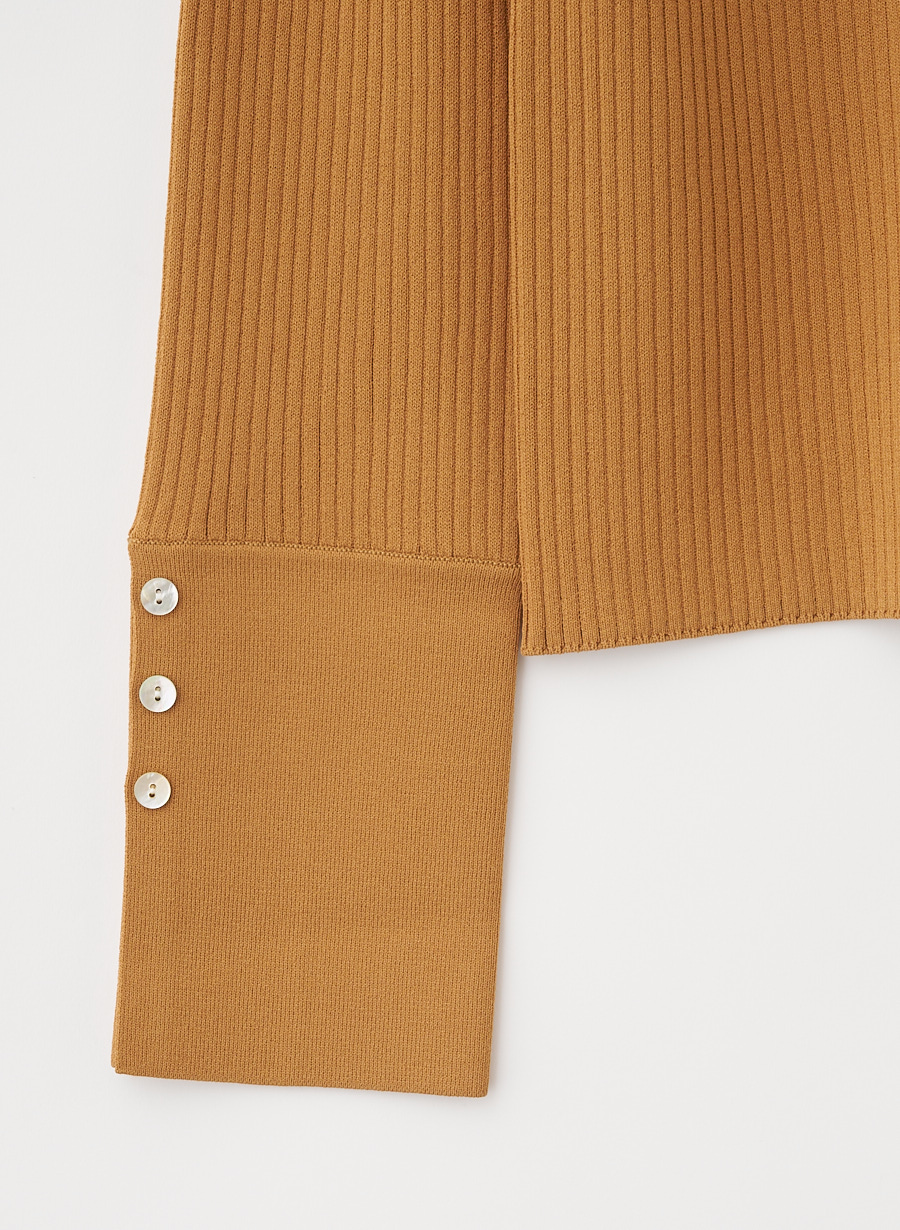 ・袖口はシャツディテールのようなカフス風釦デザインで、自然に開くさり気ないフレアスリーブに仕上げました。