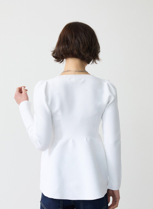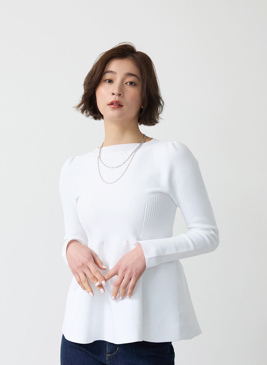 ・袖山はタックでふんわりとさせながらも、肘下はすっきりと仕上げることで、メリハリのある細見えシルエットにこだわりました。※裏地なし