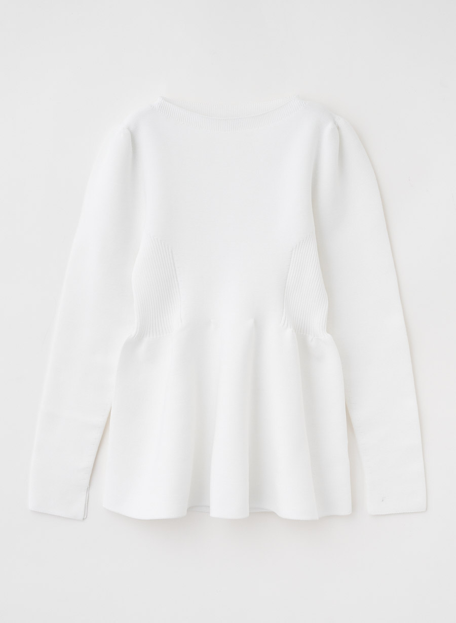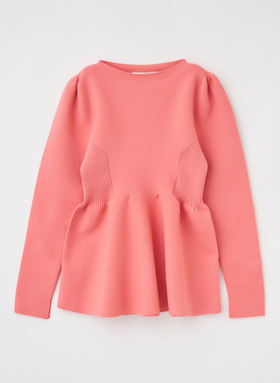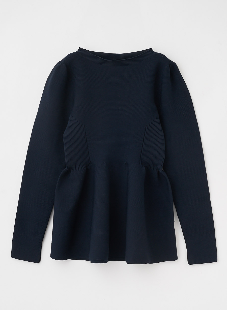 ・ボディはガーター編み、ウエストの脇部分にはリブを配し、フィット&フレアに仕上げました。