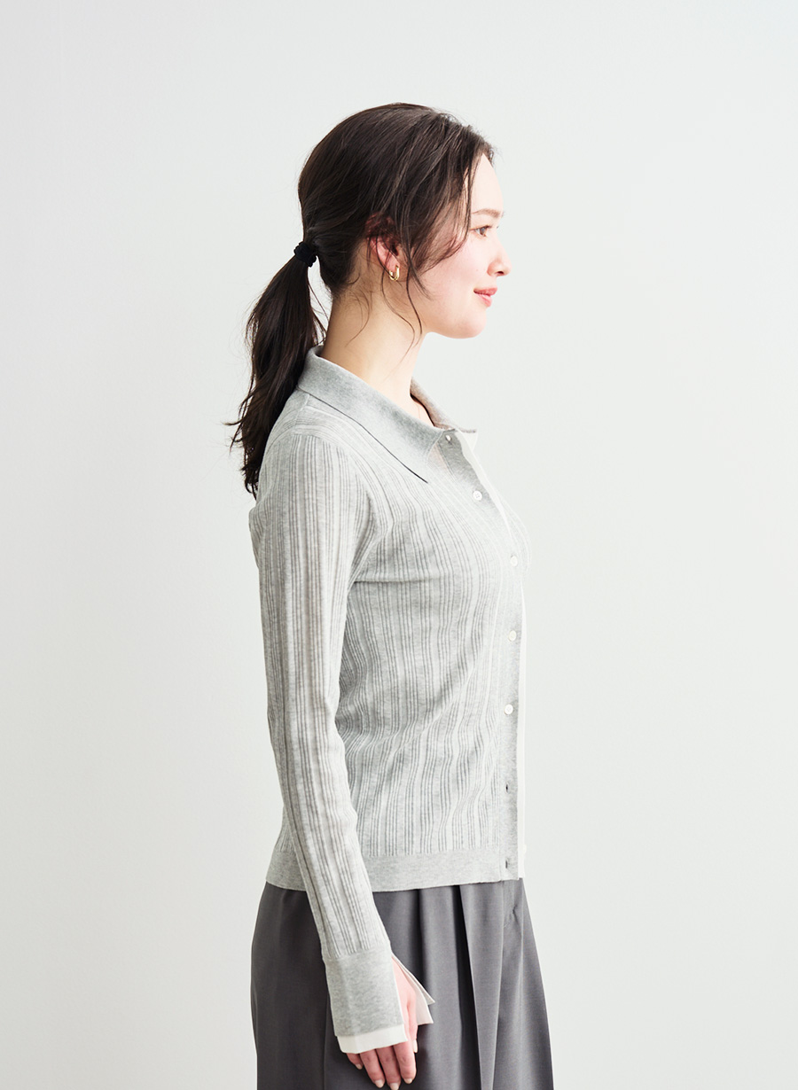 ・さらっとしたドライタッチで薄手の編み地なので、ジャケットインにも着やすく、長いシーズン活躍してくれる1枚です。※裏地なし