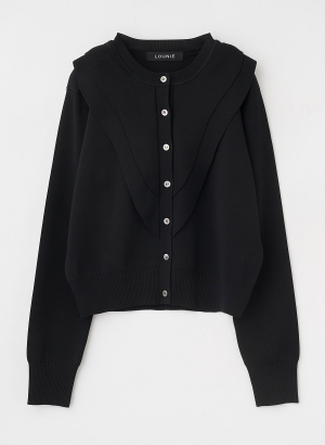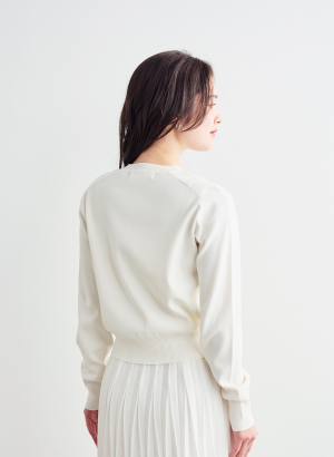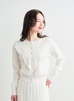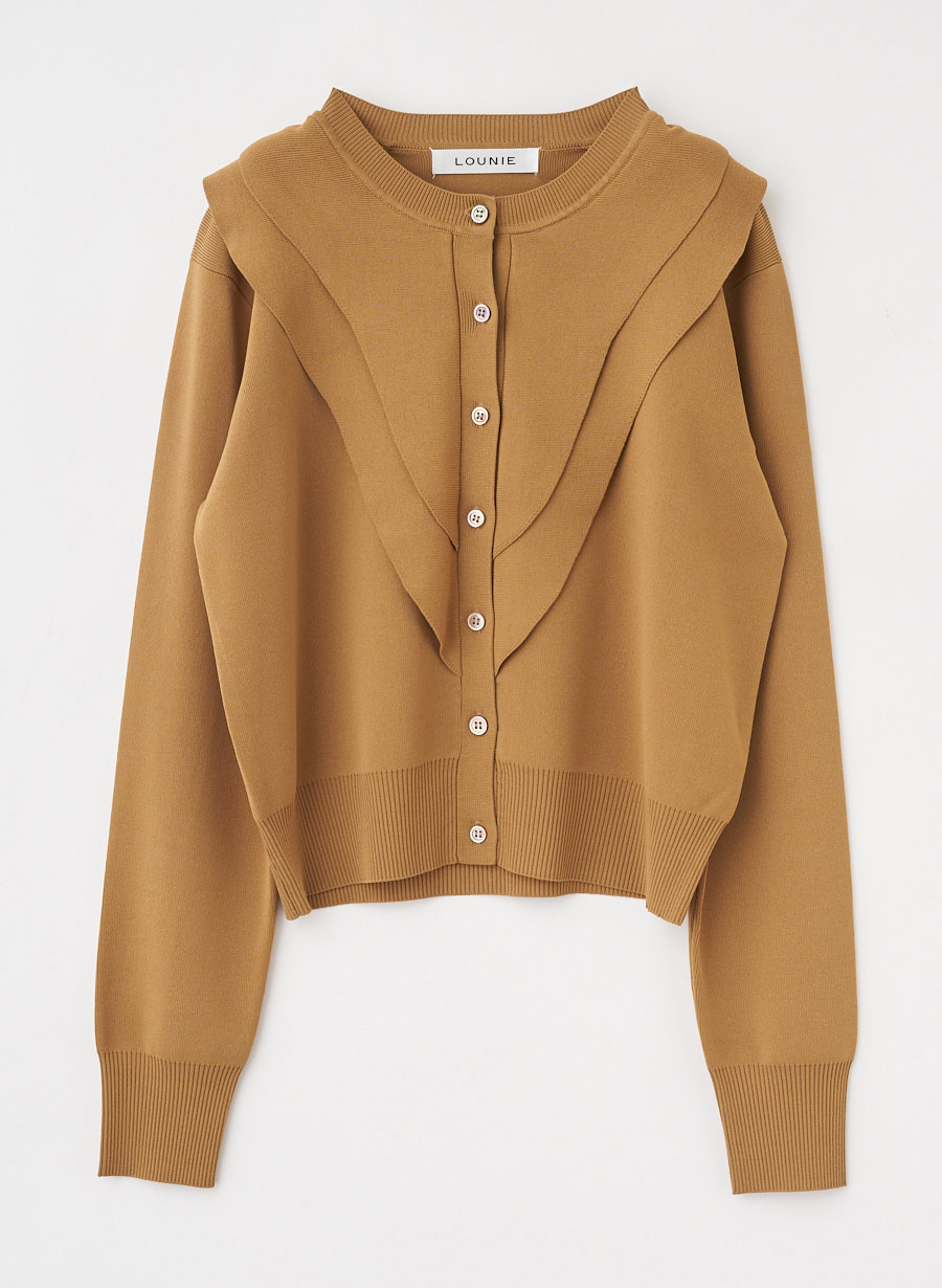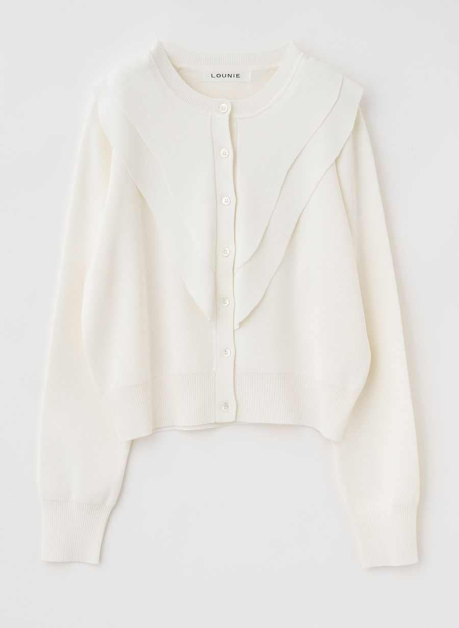 ・ボディはストレッチを入れしっかりと目を詰めた総針編みで、フリル部分は本取りを減らして軽やかな編み地に仕上げています。