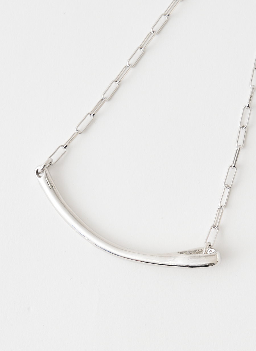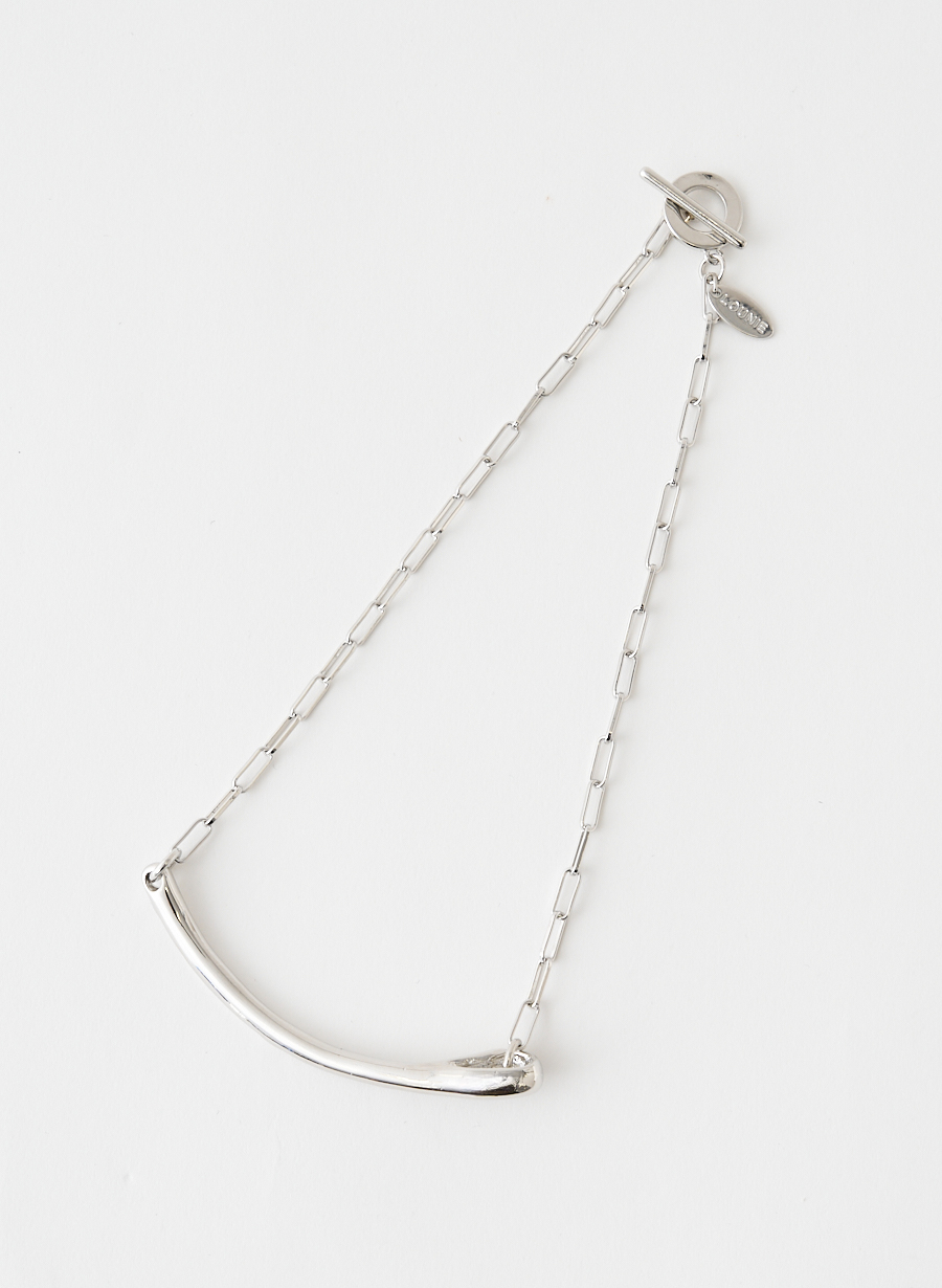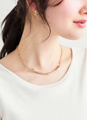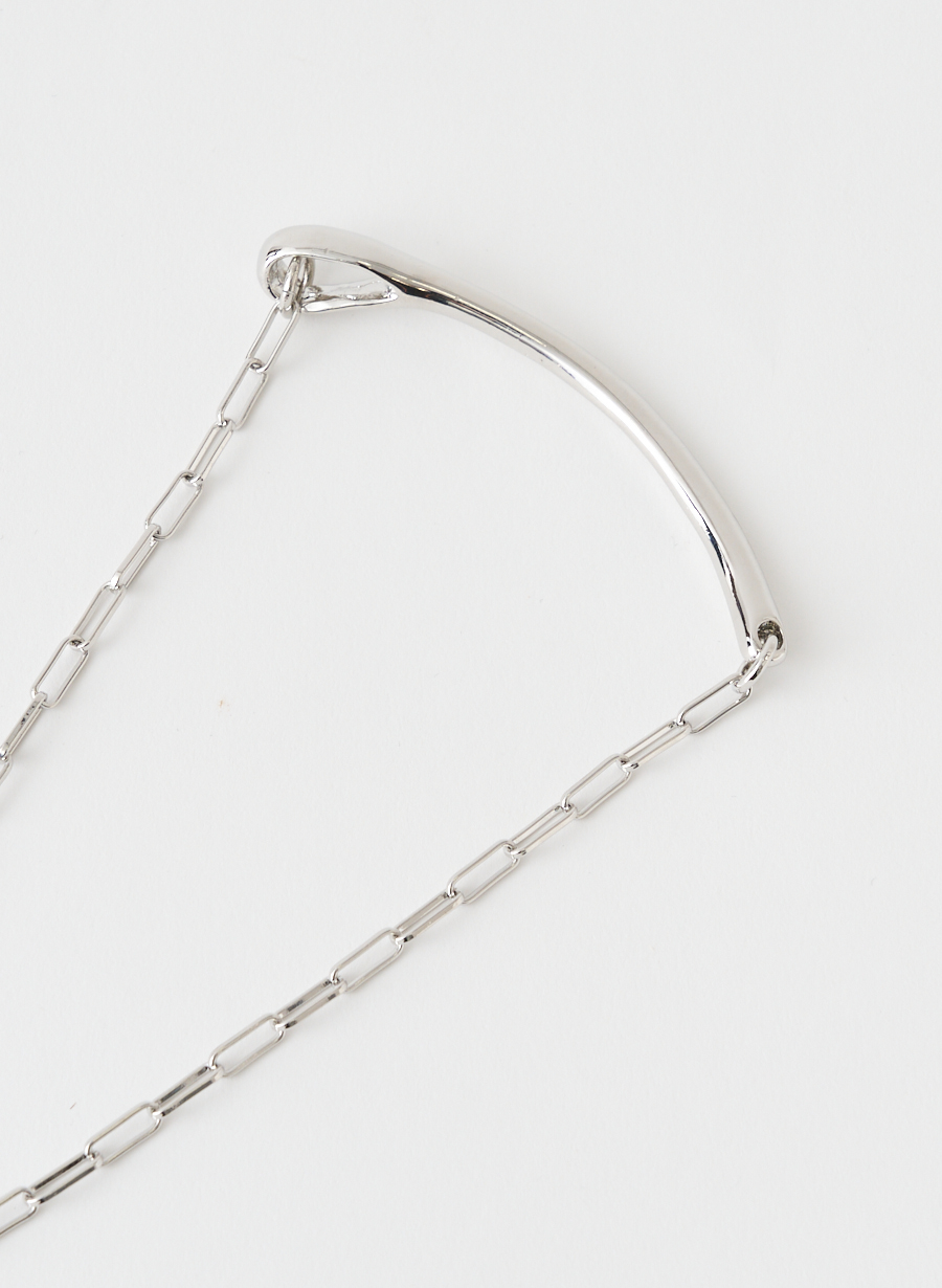繊細なオーバルチェーンと、カーブを描くメタルパーツを組み合わせることで、シンプルながらも存在感のあるデザインに仕上げました。
