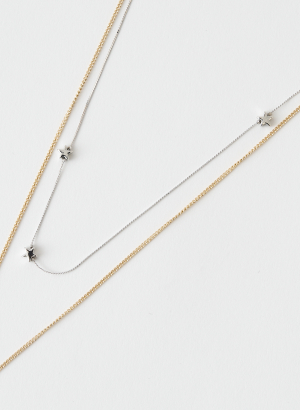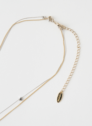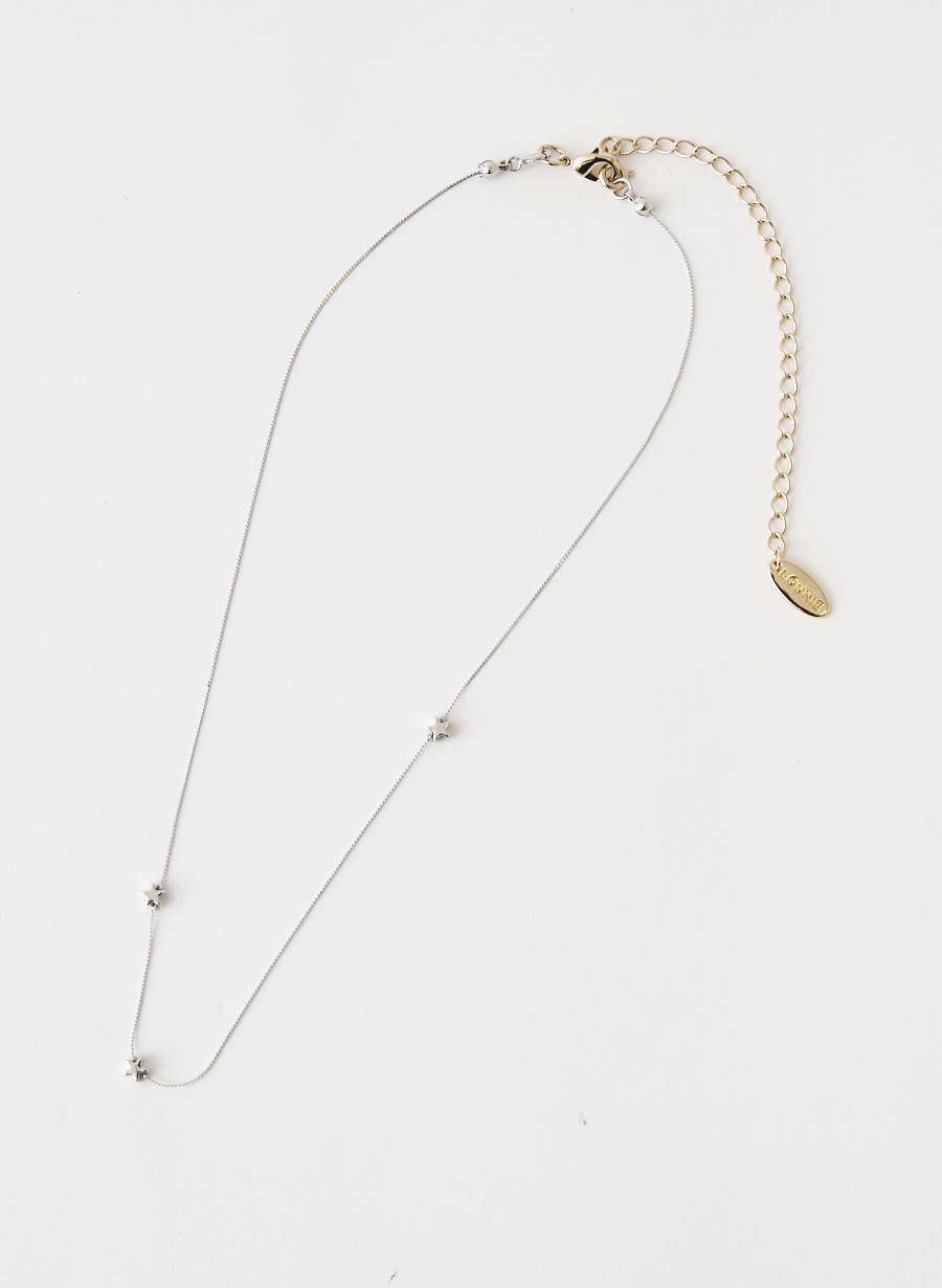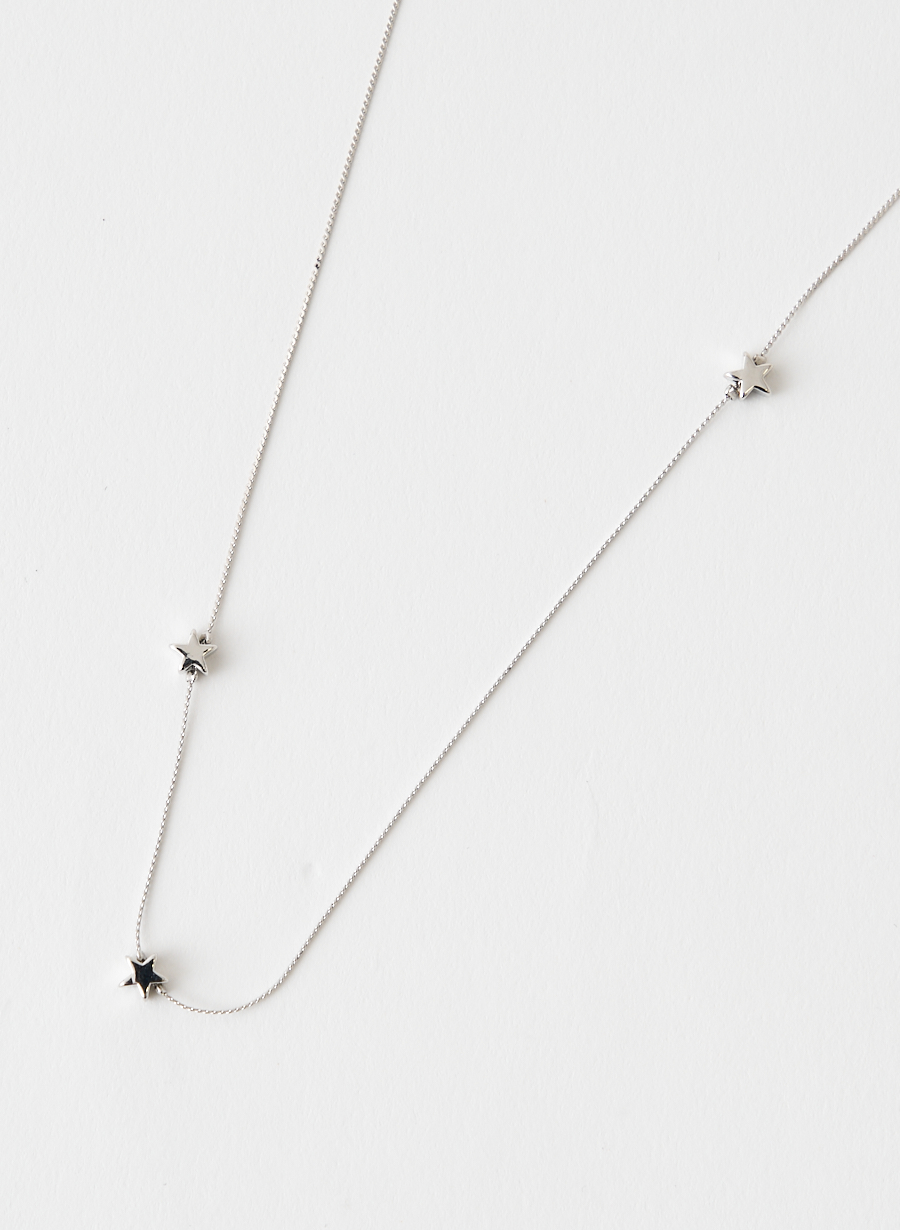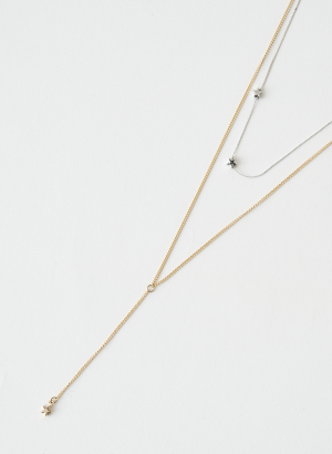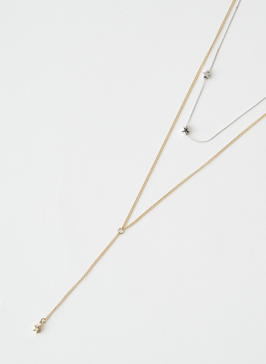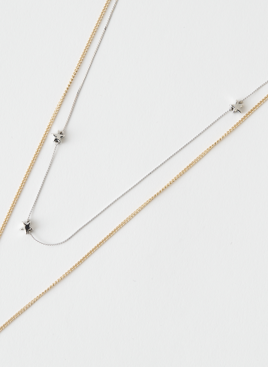 繊細なチェーンに小さな星のモチーフを散りばめた、ネックレスとピアスのセット企画アイテムです。