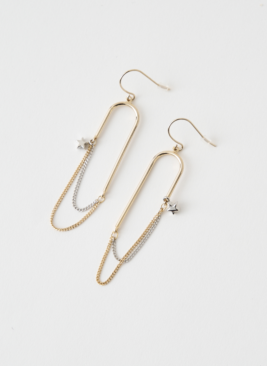 ニュアンスのあるピアスは縦長のオーバルフォルムに、華奢なチェーンと星が揺れるエレガントなデザインで企画しました。