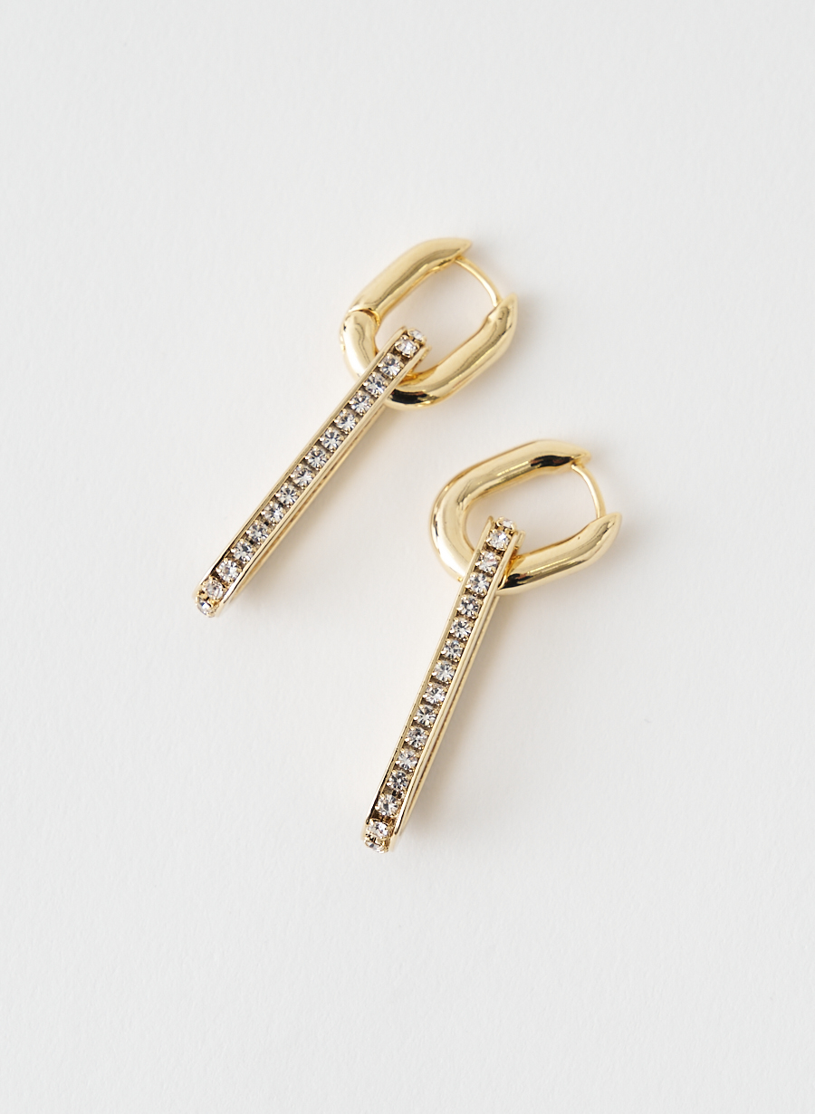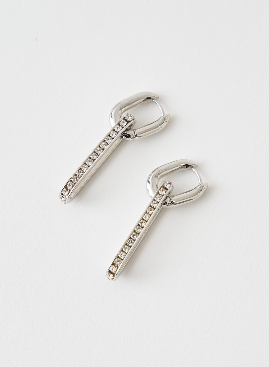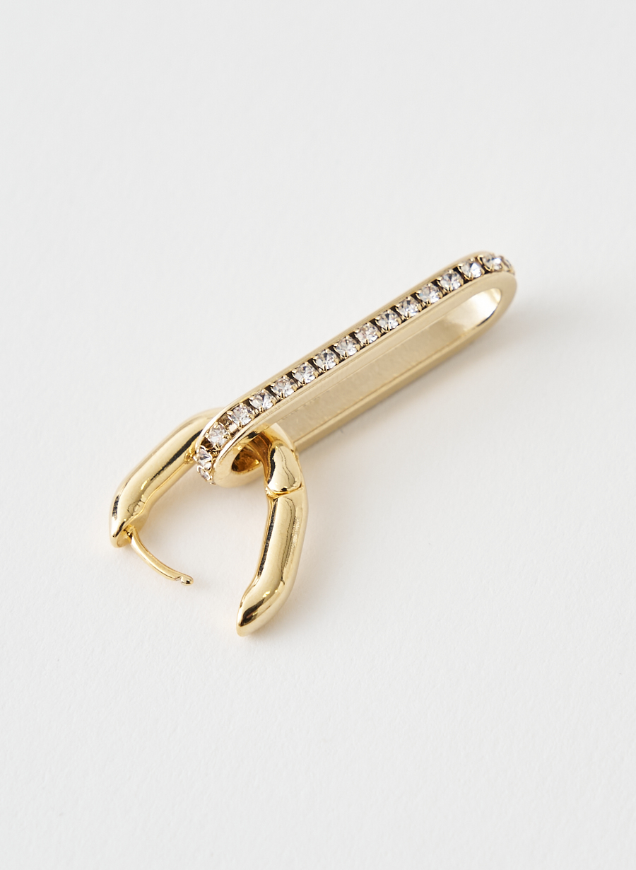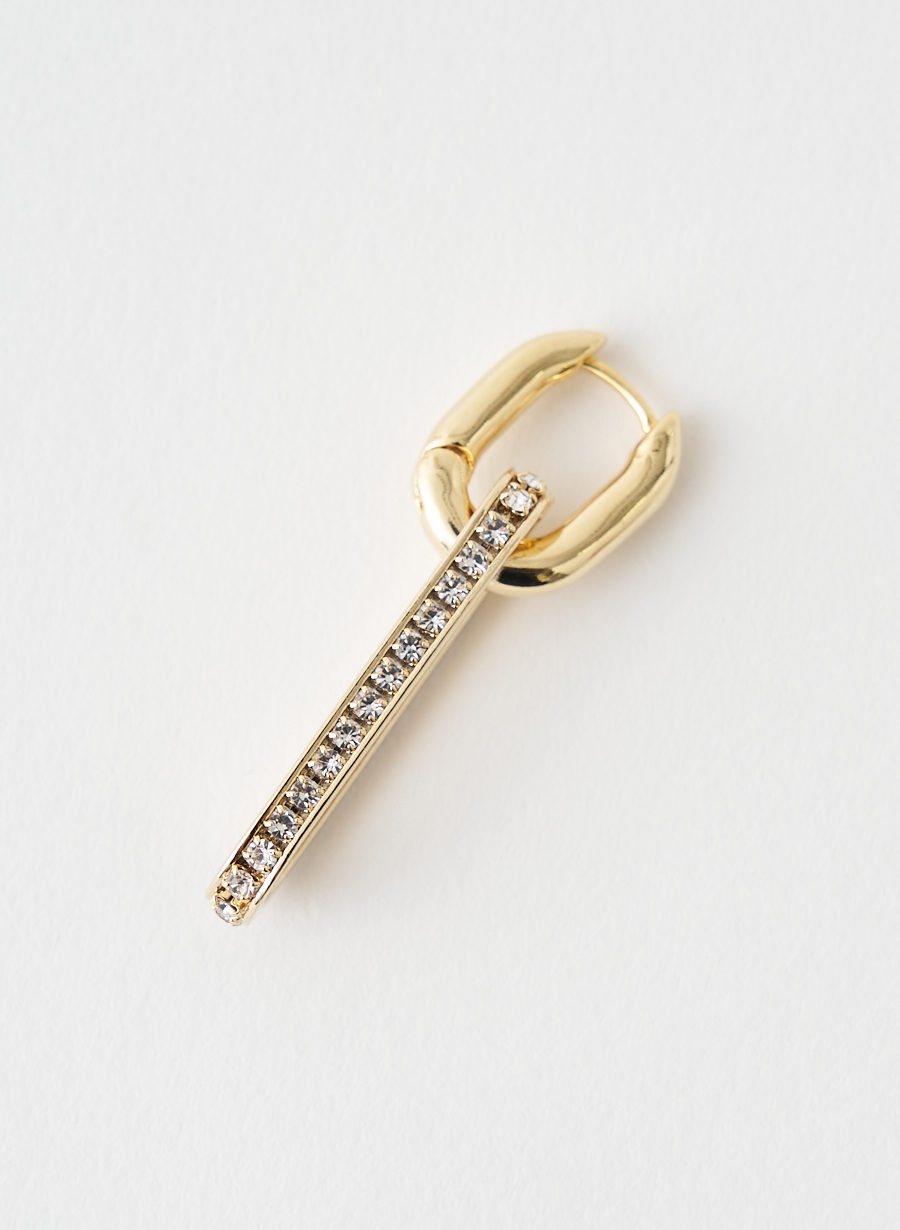 ラインストーンを贅沢に使用したドロップパーツと、オーバル型フープを組み合わせたデザインアイテムです。