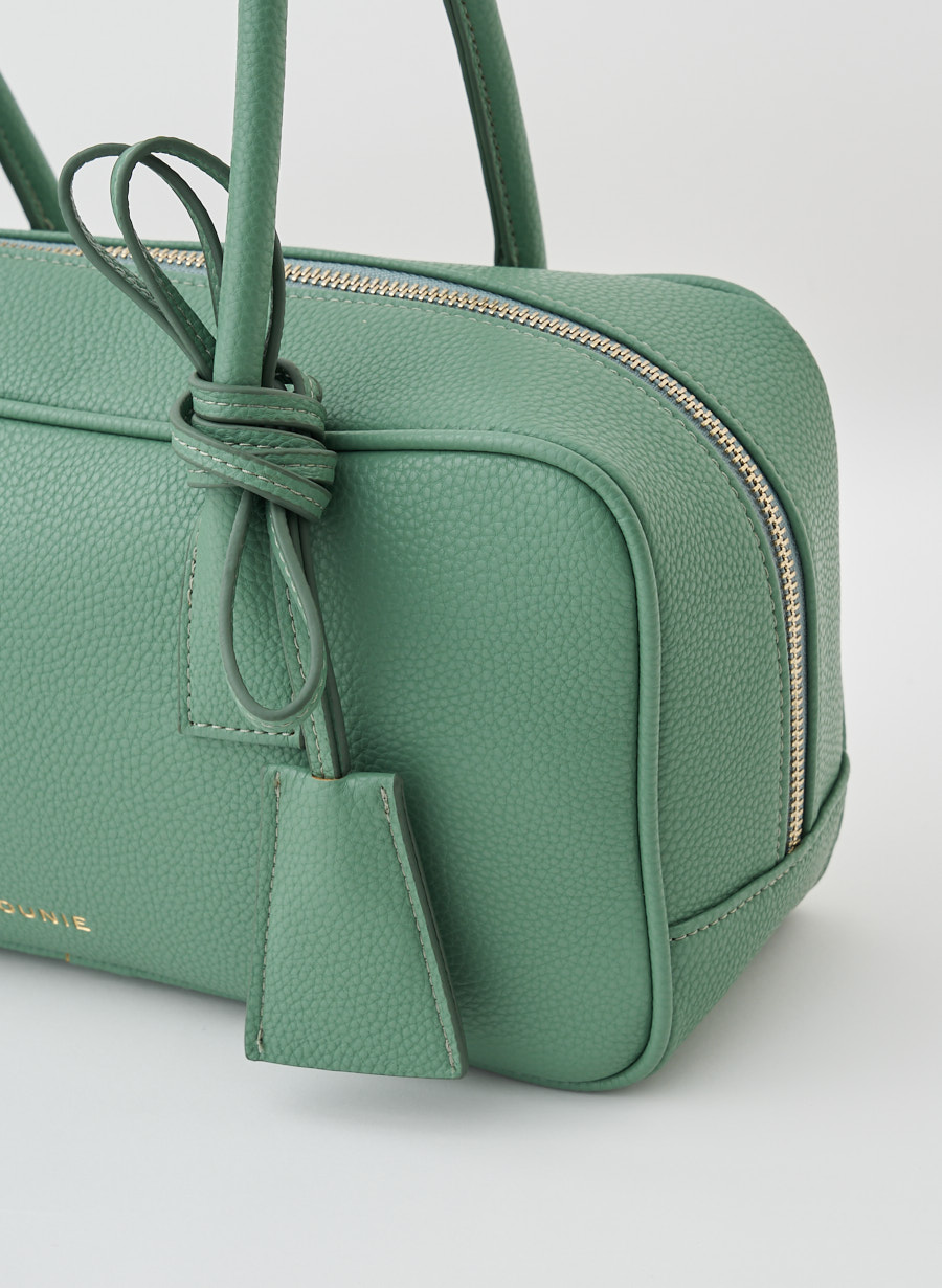 シュリンク調の合成皮革を使用したボストンバッグ。