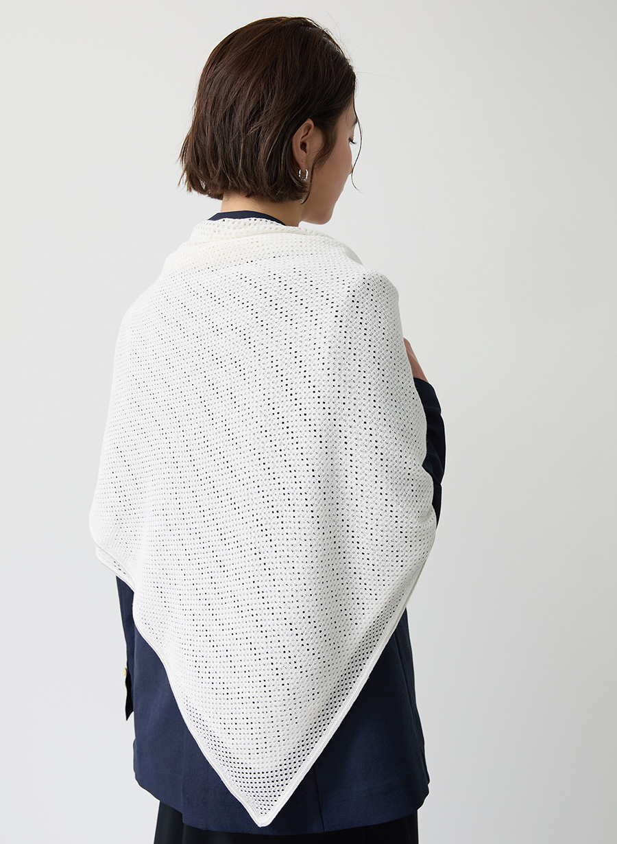 三角に折って羽織ることで、落ち感のある美しいシルエットに!羽織りとしてはもちろん、ビスチェ風などのレイヤードアイテムとしても◎!ジャケットの上から羽織る、今季らしいレイヤードスタイルもおすすめです。