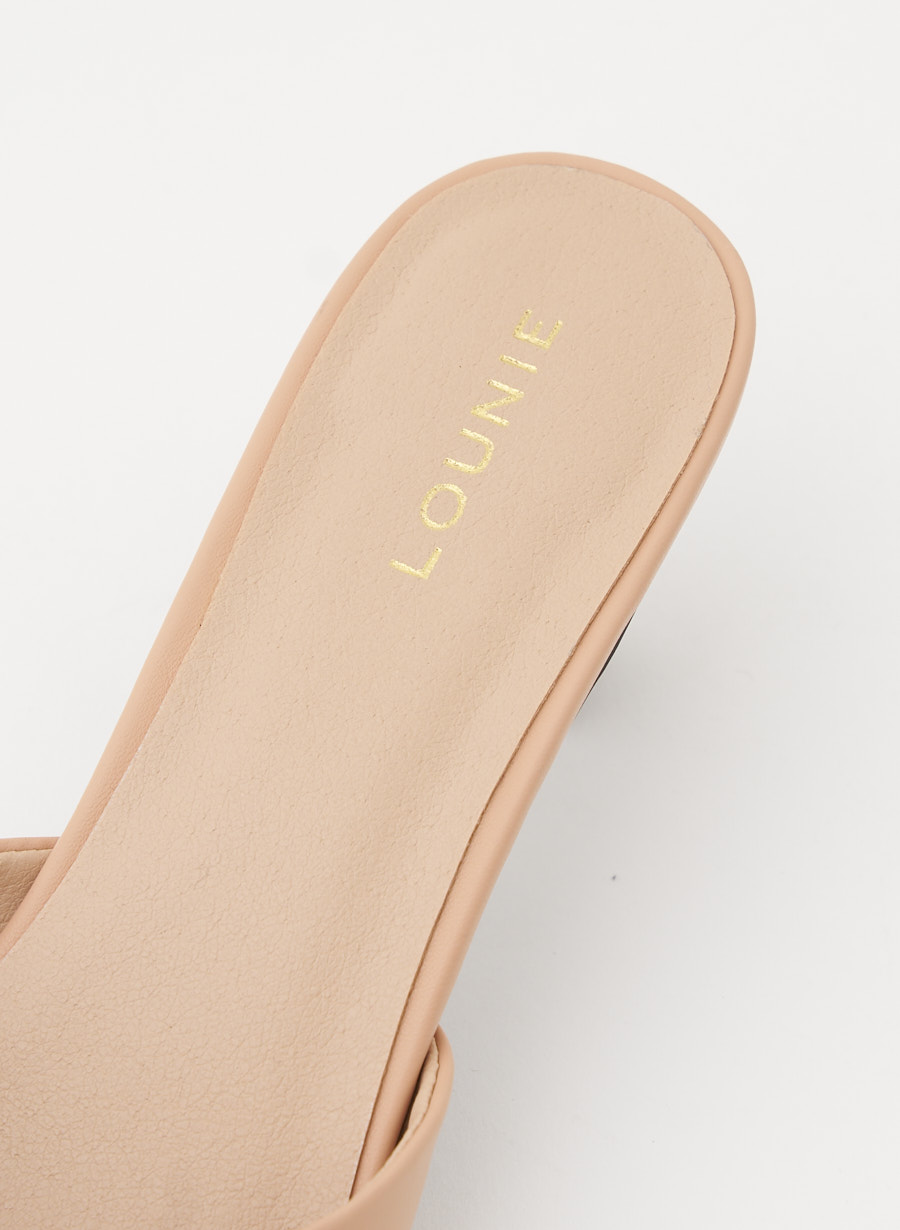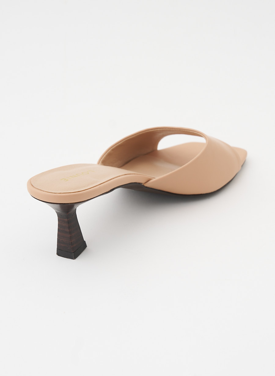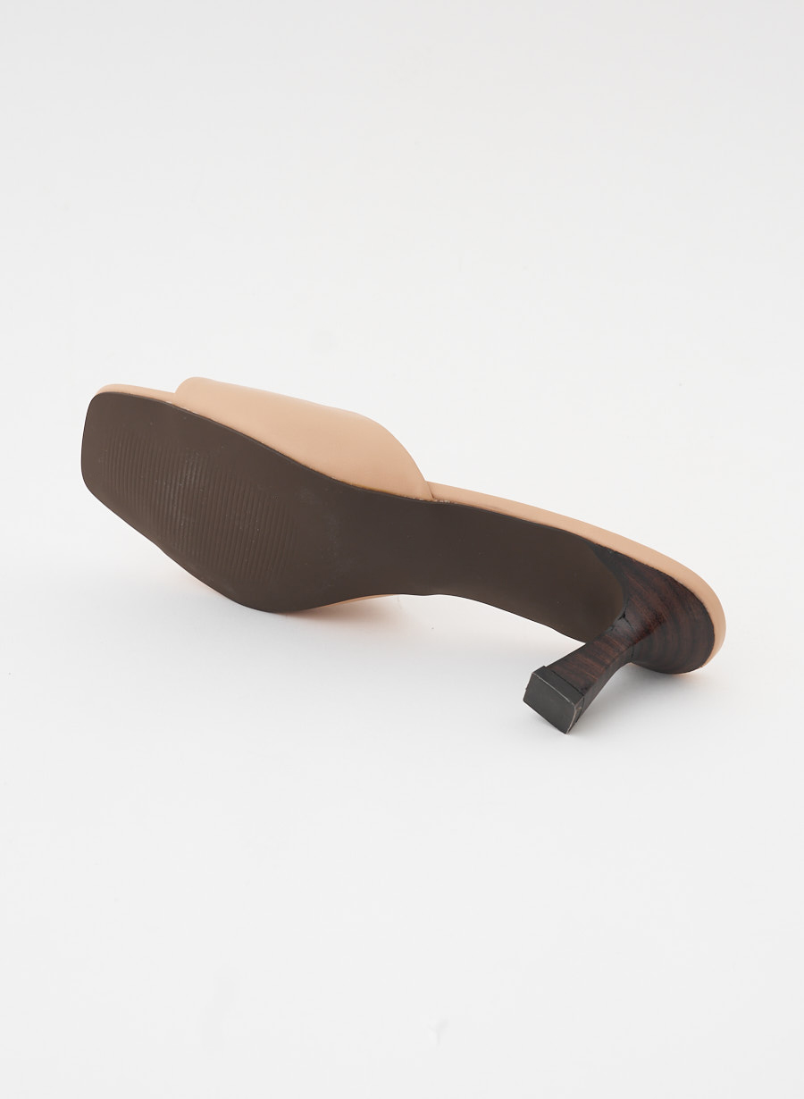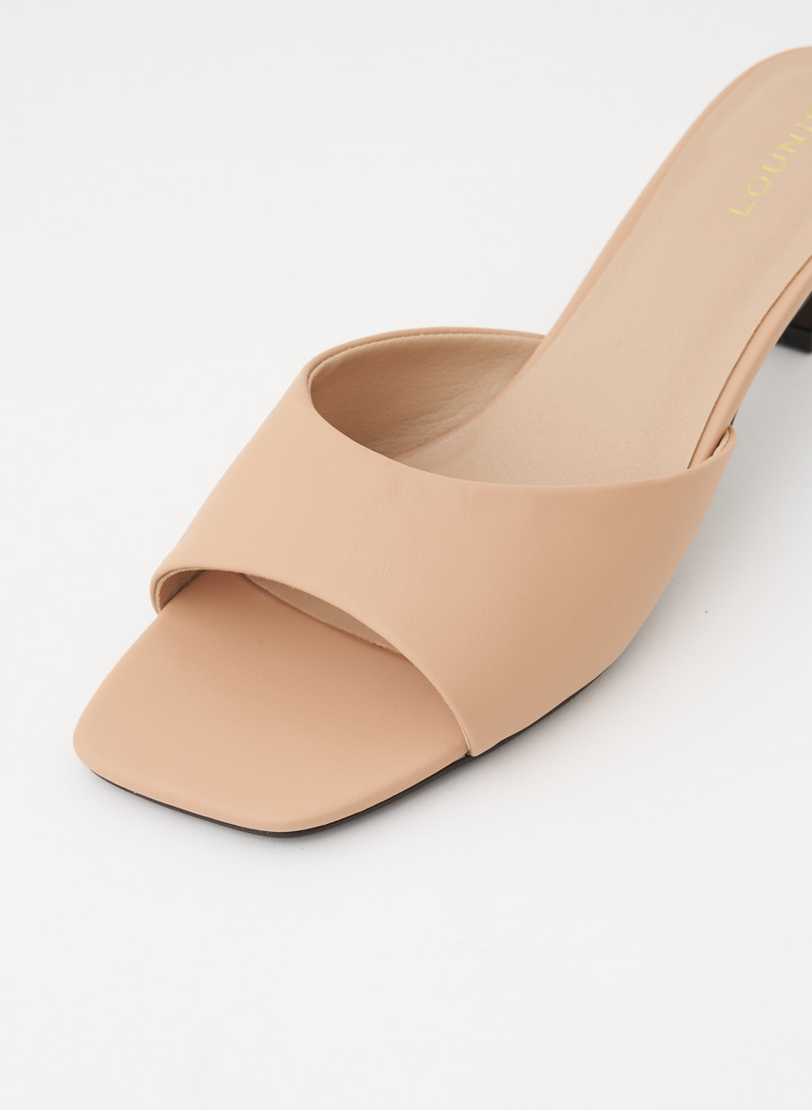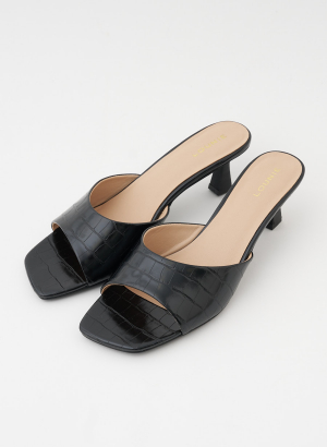 スクエアトゥ&ルイヒールをアクセントにして、華奢で女性らしいデザインに!着脱が楽で気軽なミュールアイテムですが、程よいカーブを描いたカッティングラインが甲周りにしっかりとフィットしてくれるので安定感も◎。