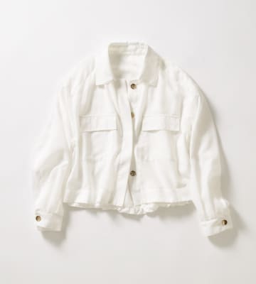 展示会で大人気!「この夏のジャケットはコレに決まり!」と注目の的に。麻調のドライなタッチと清潔感ある白。ブラウスのような着易さが魅力。