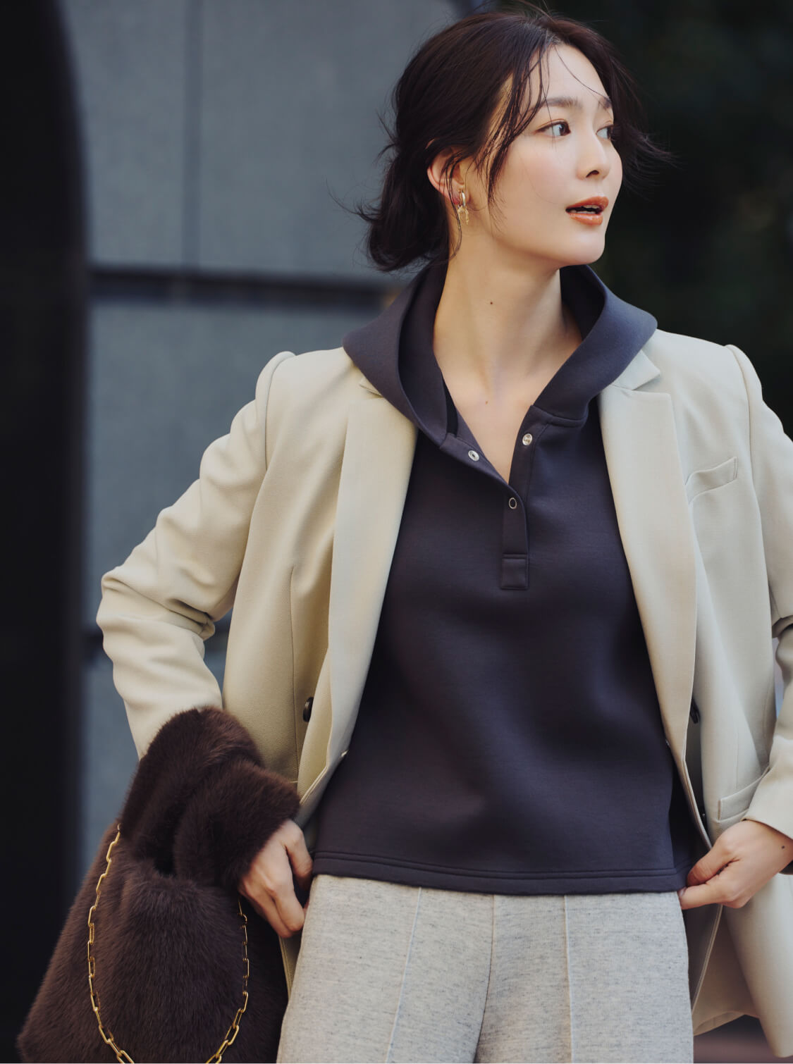 快適な着心地はそのままに、部屋着に見えない洗練されたムードを追及しました。そのままセットアップで着れば、週末のお出かけスタイルに。
