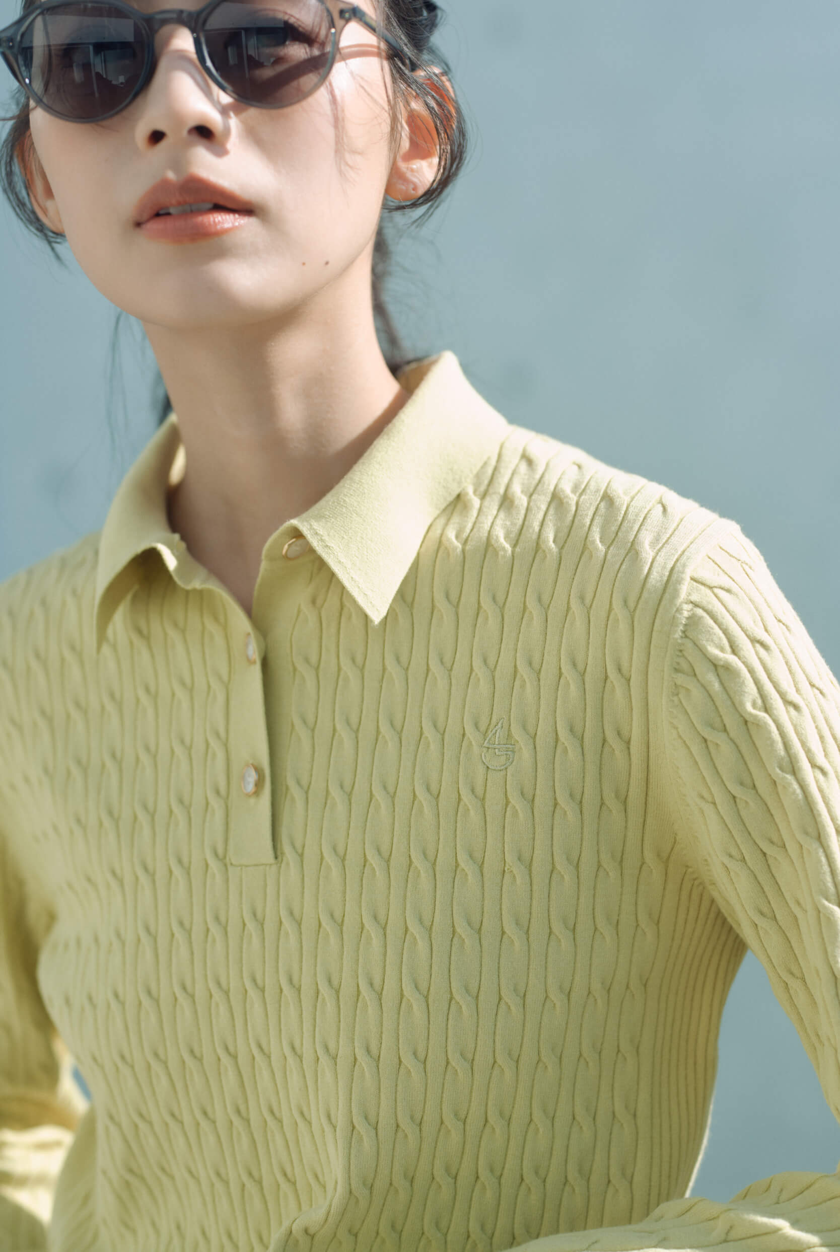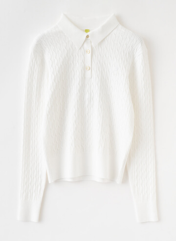 ¥19,800BUY衿付き×ケーブル編みで知的な印象に。