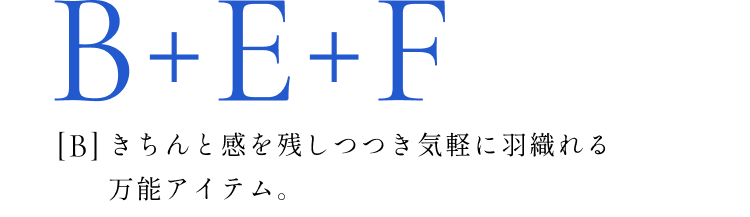 週5日の「ON」を完全にカバー。どのアイテムを手に取っても着こなしが完成する完結型ワードローブです。